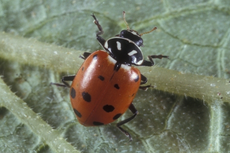 Also known as lady beetles or ladybird beetles, ladybugs typically have a round or oval-shaped body with bright red or orange coloration and range in size from about 1/32 to 3/8 inch, with variations among species. Some species may exhibit variations, including shades of yellow or even black. Their elytra, the hardened forewings, often feature distinct black spots. These spots are their most recognizable feature, although their number and arrangement vary.
