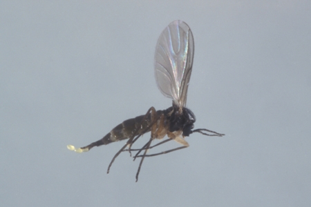 Fungus gnats are small flying insects commonly found in damp or moist environments – particularly potted plants, flower beds, and gardens. They are often associated with overwatered or poorly drained soil as well as decaying plant matter. Adult fungus gnats primarily feed on nectar and plant sap and while they are not harmful to plants, they can become a nuisance when present in large numbers. Fungus gnats lay their eggs in the top layer of soil or compost, as they hatch and grow the larvae may damage plant roots, potentially affecting plant health.
